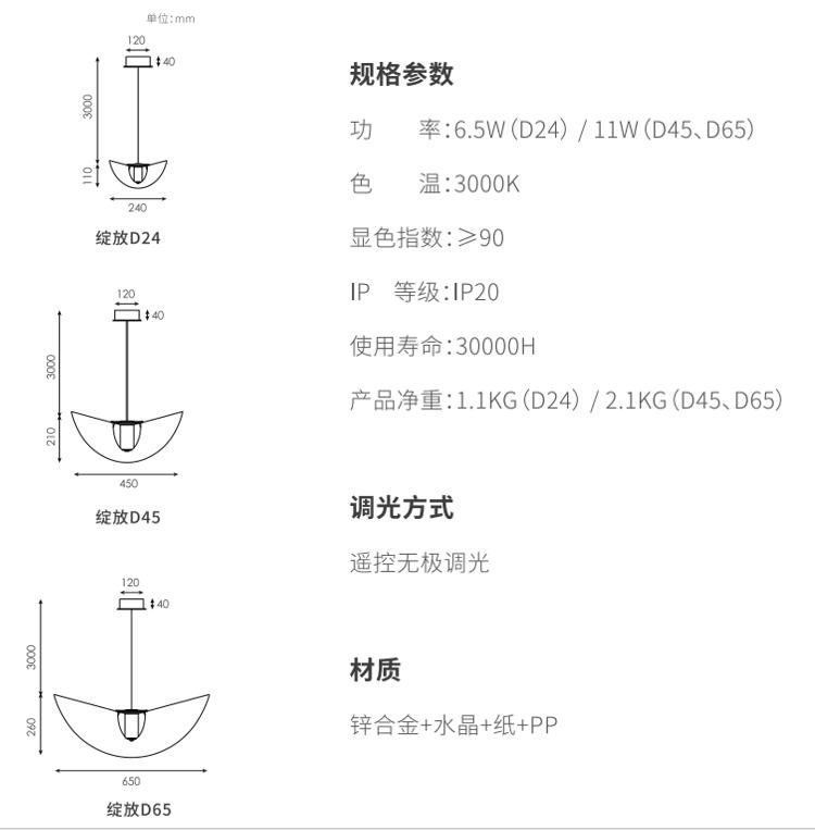 利用材料物理弹性,,,透过巧妙的结构,,灯罩在空间里呈现一个富有张力和生机的曲面,,,仿佛在空间里热烈绽放的花朵,,灯罩表面采用手工敷纸工艺,,,,更加的朦胧舒适,,纸纤维的材质也让灯光更加温柔。。。选用实心高级无铅水晶材质,,,,这种材料洁净无瑕的透明度与低色散特性,,,,硬度高,,多用于精密光学器件及高端水晶制品,,,更好展现丰富光影质感。。。